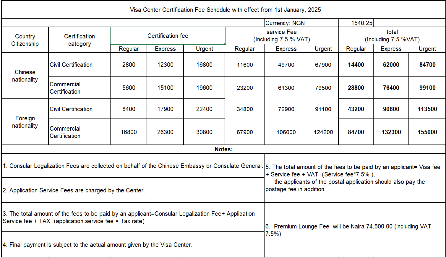 Payment methods: All fees must be paid immediately after the application is successfully submitted at the China Visa Application Center in Abuja.