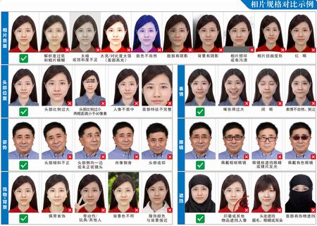 请对比以下示意图,检查您的相片是否符合要求。