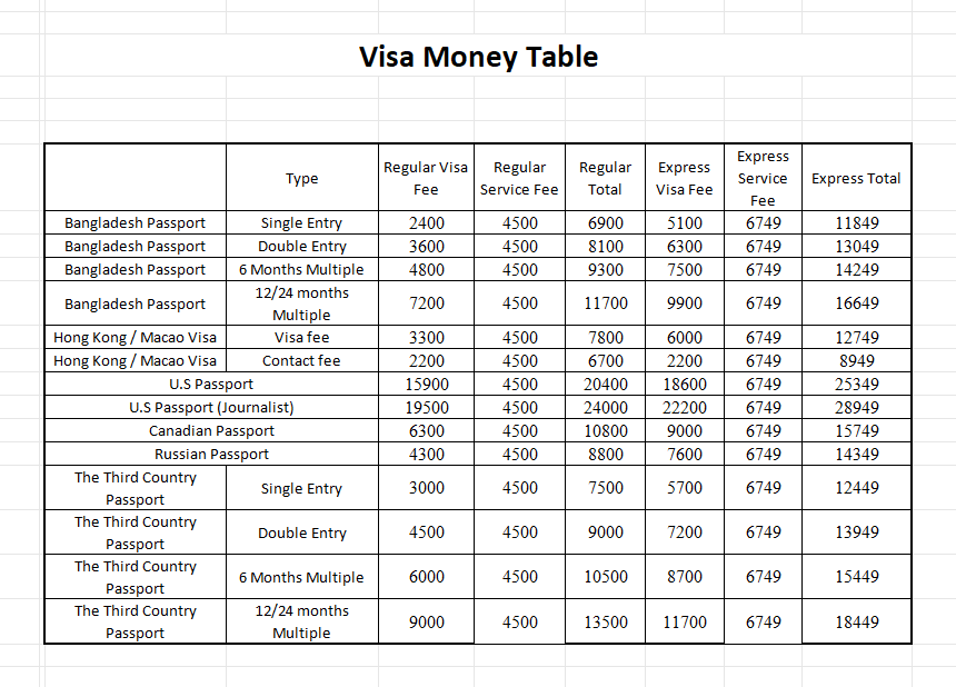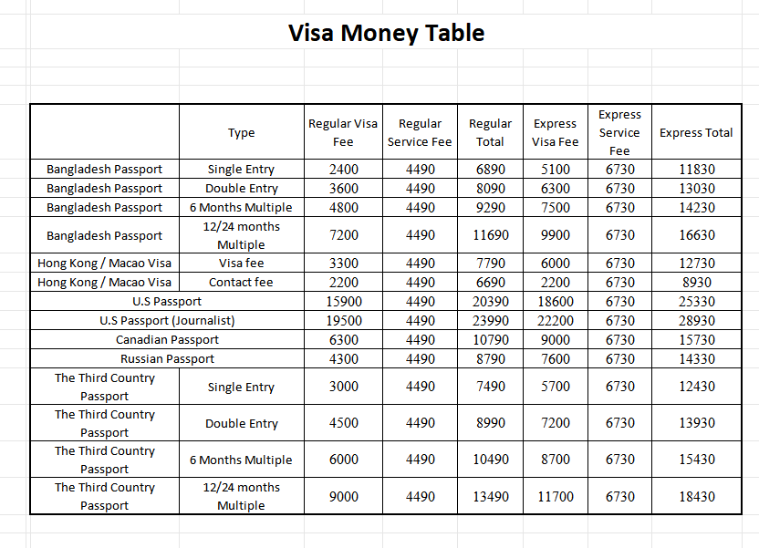 1) The total amount of the fees to be paid by an applicant= Visa fee + Application Service fee(Tax inclusive).Visa Fees are tax exempted and collected on behalf of the Chinese Embassy .Application Service Fees(Tax inclusive) are charged by the Center.