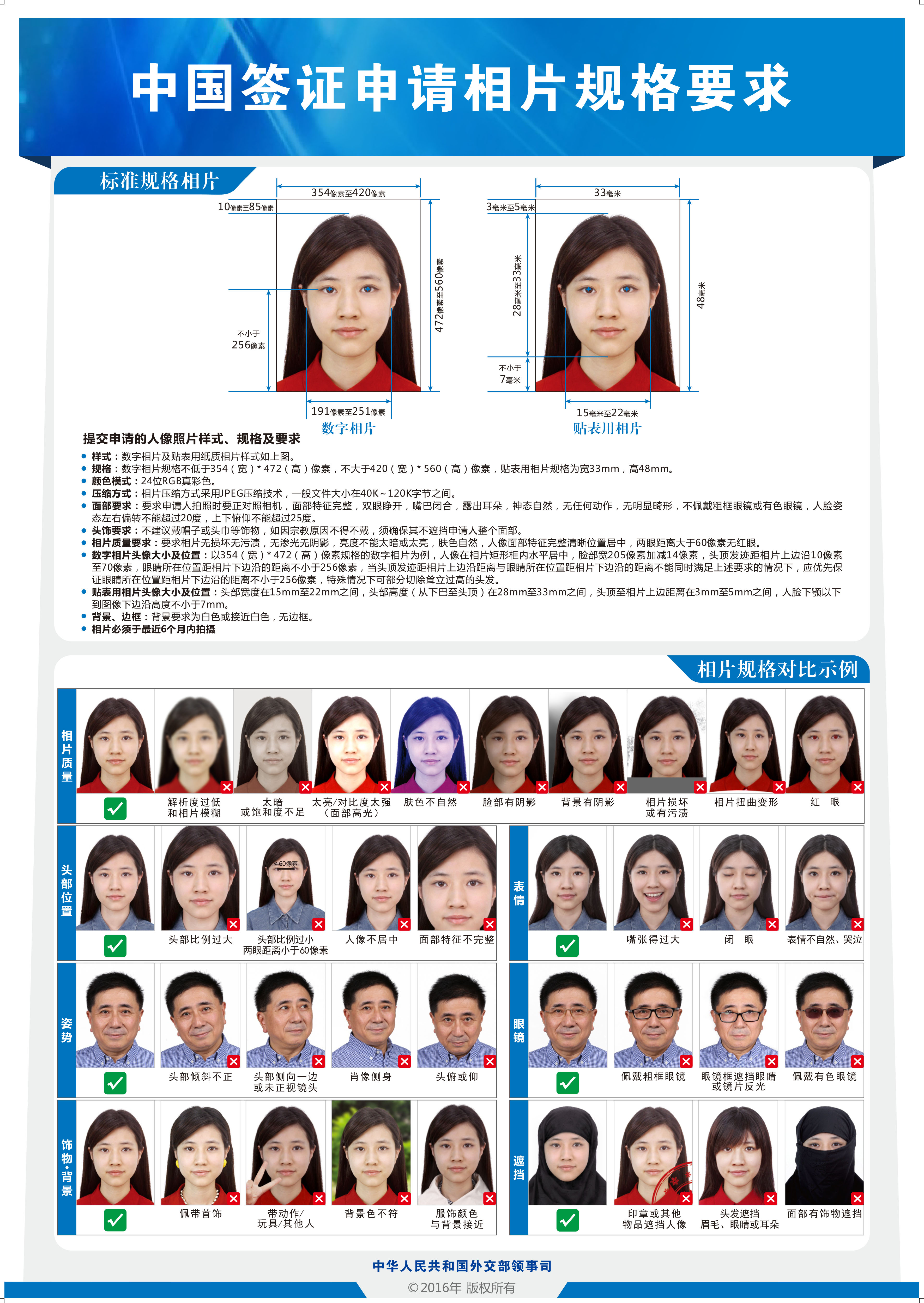 根据最新通知,本中心从即日起对签证相片规格细则做进一步明确。请申请人参照附件具体规定,在签证申请时提供符合要求的相片,不符合要求的相片将不予受理。