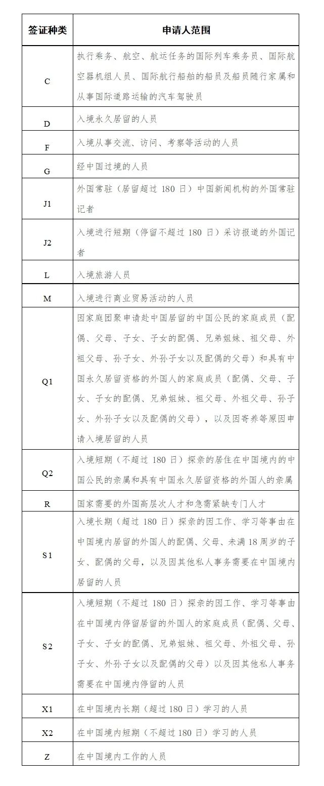 为进一步便利赴华签证申请人,自即日起至2026年12月31日,对所有申请停留期180日以内的短期签证申请人,免采指纹。对D字、J1字、Q1字、S1字、X1字及Z字(具体内容详见后附图片)等进入中国境内后需办理居留证件的签证申请人,仍按规定采集指纹。