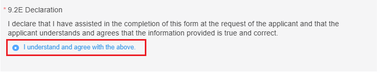 3.12 In the Declaration page, please select the filer’s identity (the applicant or the person who fills in the application on behalf the applicant; those filling on behalf of others shall provide their personal information and relationship to the applicant).