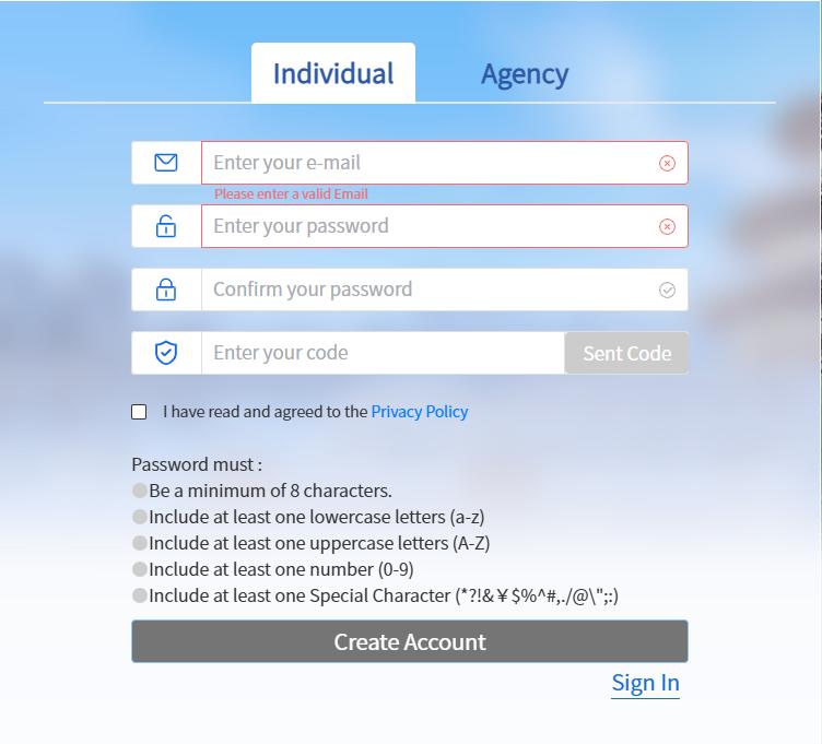 First-time registrants need to enter their personal e-mail address to complete the registration. As the verification code will be sent directly to the e-mail provided during registration, please ensure the e-mail account is active and can receive emails normally.