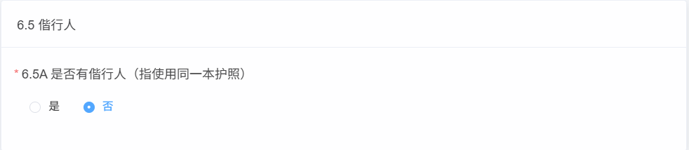 3.9 【偕行人】信息仅指使用同一本护照的情况。如一同出行人员使用不同护照,该项请填写“否”。