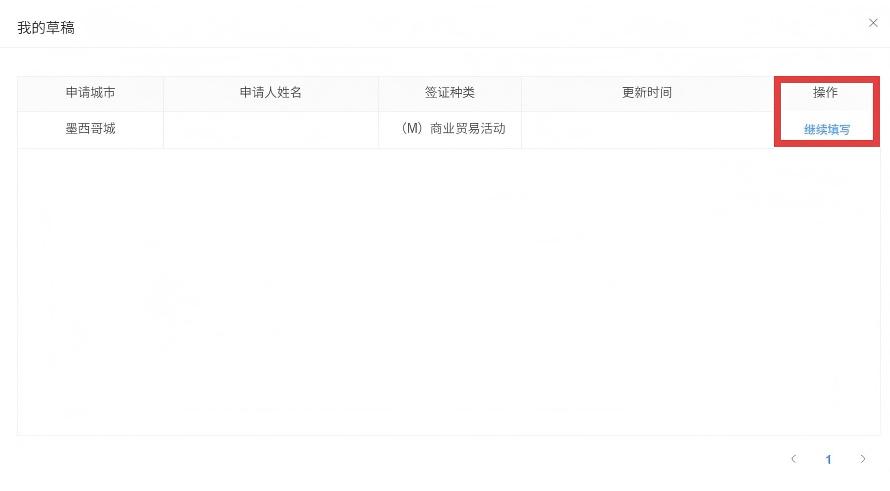 3.3 如系统提示有一笔正在办理中的申请单,可在页面右上方点击已登录账号-【个人中心】查看处理。请注意,每个护照号仅可有一个办理中的订单。