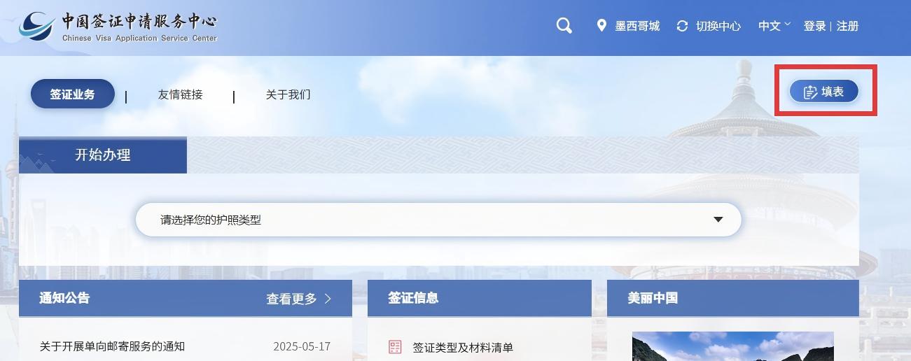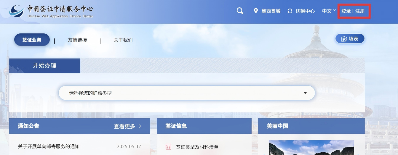 1. 本网站为在墨西哥城签证中心申请中国签证的申请人使用,在开始注册前请确保您选择了正确的地址。(注意查看页面右上方!)