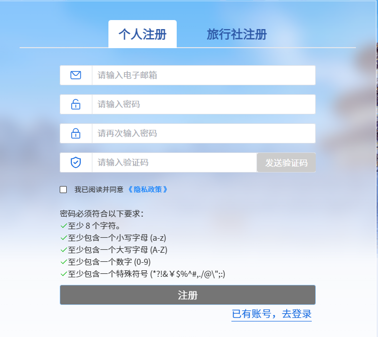 已注册过的申请人可输入注册的邮箱及密码直接登录: