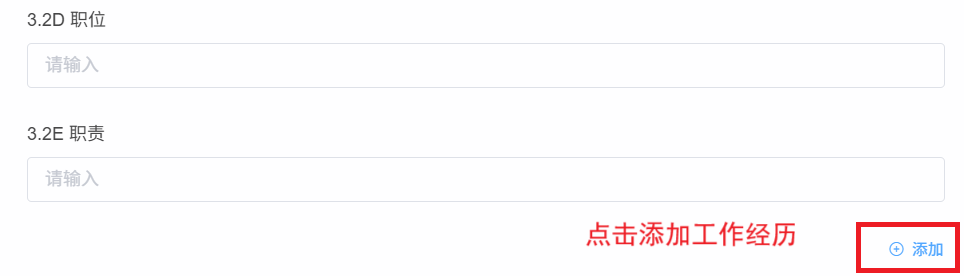 3.5 请如实填写近5年工作经历,提供完整公司/单位名称,勿填缩写简写。如近5年(曾)有多项工作履历,可点击右下方【添加】增加工作经历。