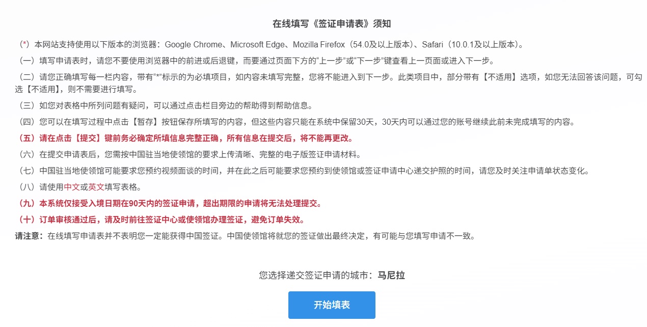 (1)在线填写签证申请表