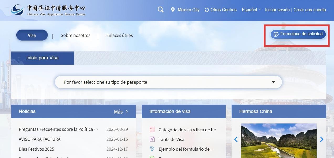 1. Este sitio web es para solicitantes que solicitan una visa para China en Ciudad de México o Tijuana. Por favor, asegúrese de haber seleccionado la ubicación correcta antes de comenzar el registro. (Importante: ¡Por favor verifique la esquina superior derecha de la página!)