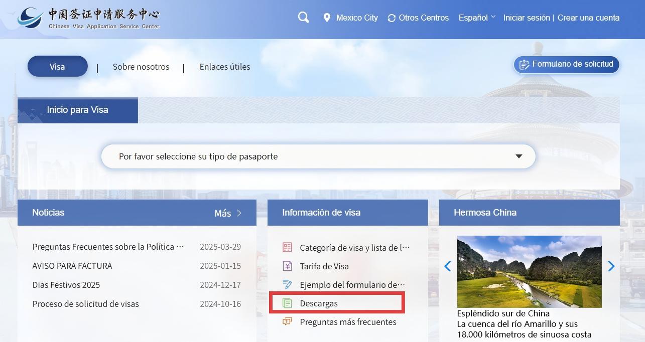 4.2 Todo tipo de declaraciones se pueden descargar desde la sección【Información de visa】 → 【Descargas】 del sitio web del centro.